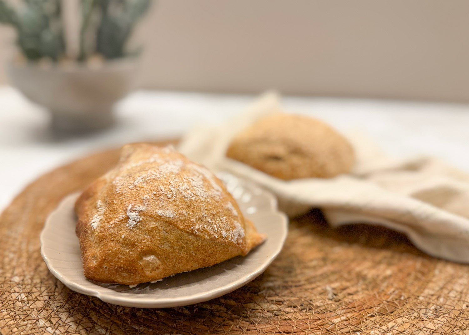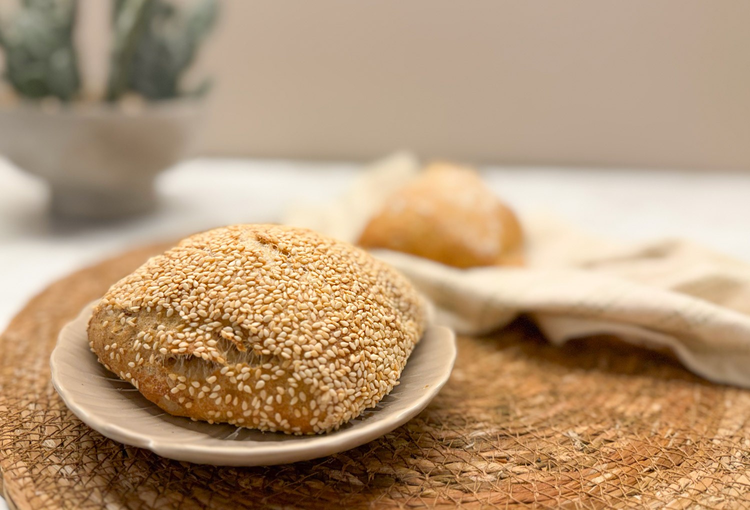 Langtidshævet surdejsbolle med let syrlig smag og sprød skorpe. Bagt uden gær.
