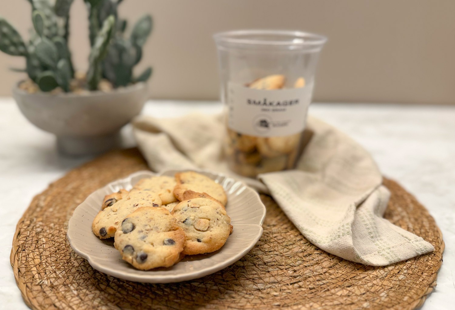 Sprøde småkager med chokoladestykker. 250g