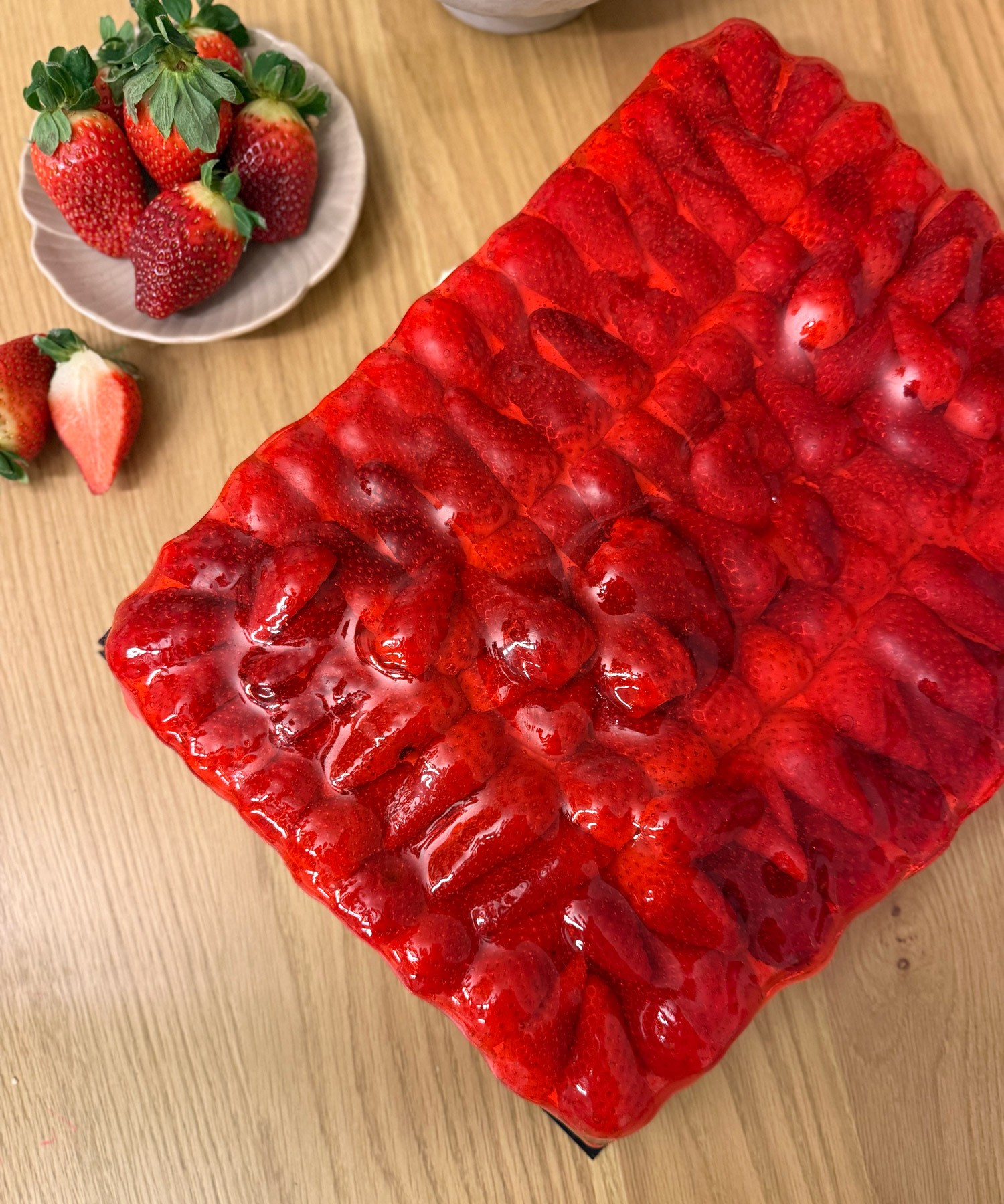 Klassisk jordbærtærte med sprød bund og cremet fyld.
