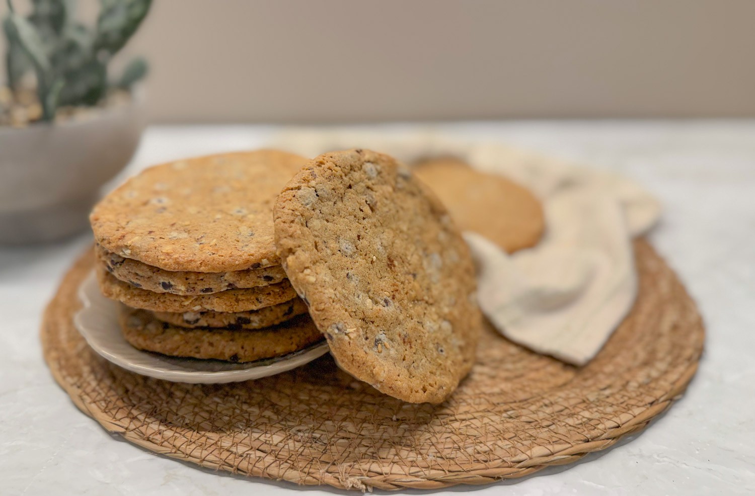 Sprød cookie med god bid og fyldig smag.